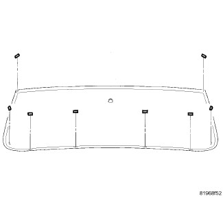 8. Apply a 10 mm (0.4 in.) bead of urethane around perimeter of windshield along the inside of the moldings. Apply two beads along the bottom edge.