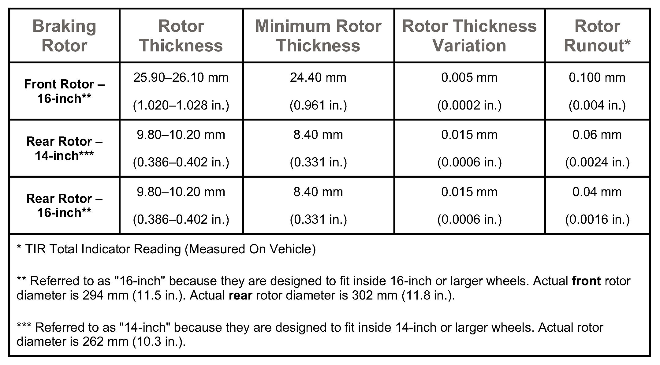 BRAKE ROTOR LIMITS/SPECIFICATIONS