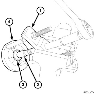 15. Tap pinion (3) with a soft hammer (1) to remove from case (4).