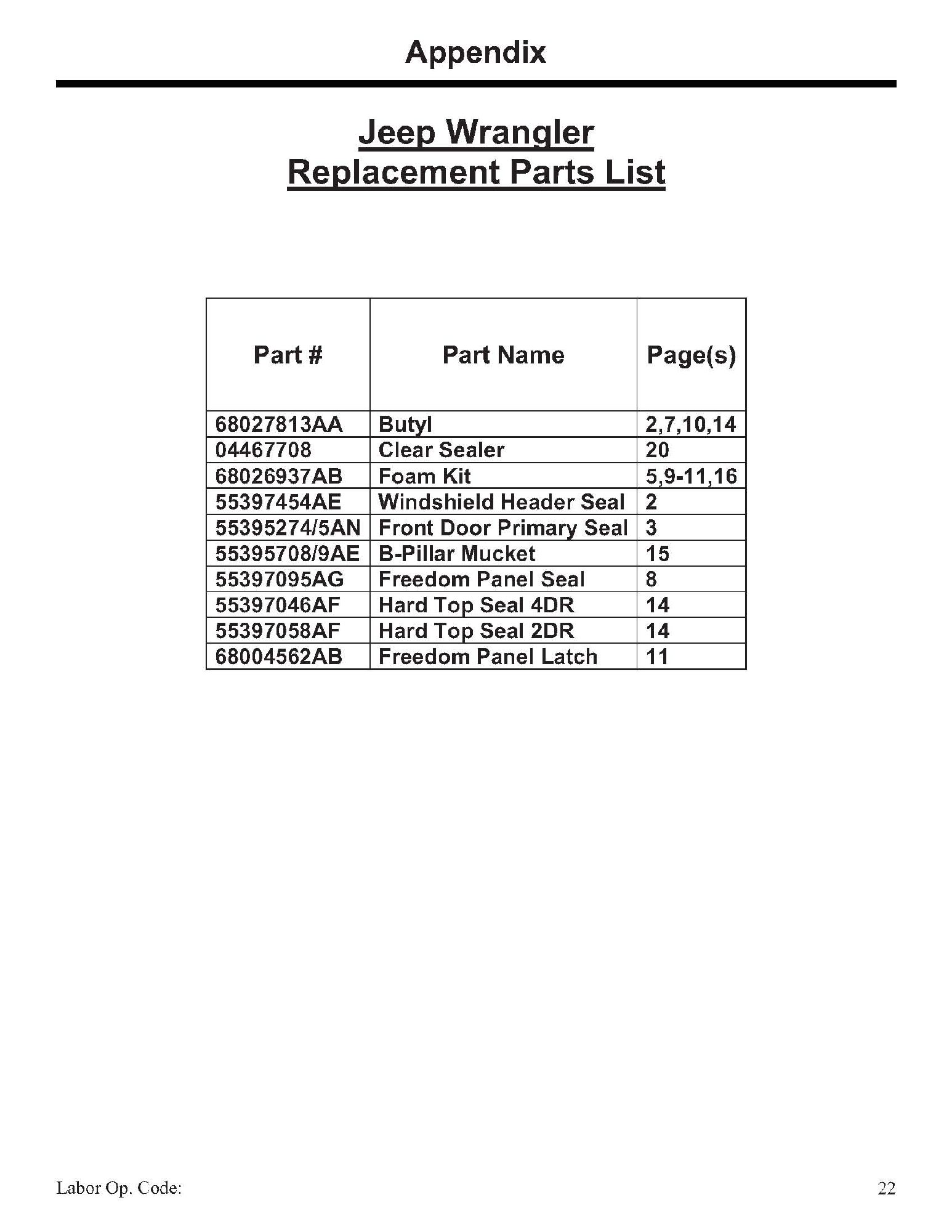 Replacement Part Numbers