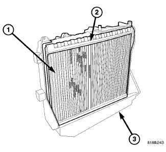 6. Carefully remove the A/C evaporator (1) and its insulator (2) from the HVAC housing (3).