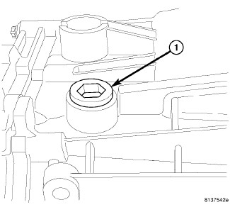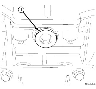 4. Fill transmission with 1.5 L (3.17 pts.) of Mopar(R) Manual Transmission Lubricant MS-9224 or to the bottom of the fill plug (1) hole.