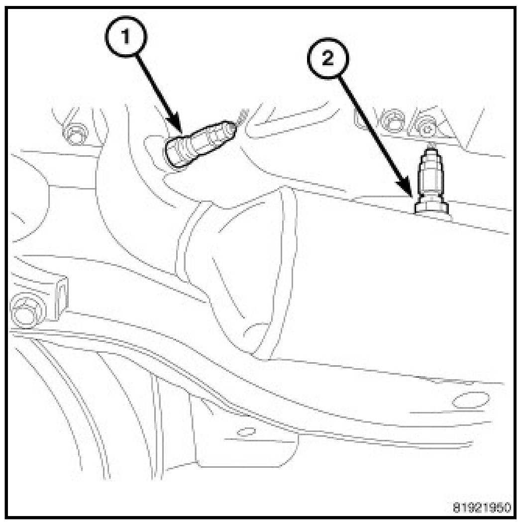 3. Using Oxygen Sensor Socket C-4907or equivalent, remove the O2 sensor (1) or (2). Certain sensors may be removed with a 22 mm or 7/8" wrench.
