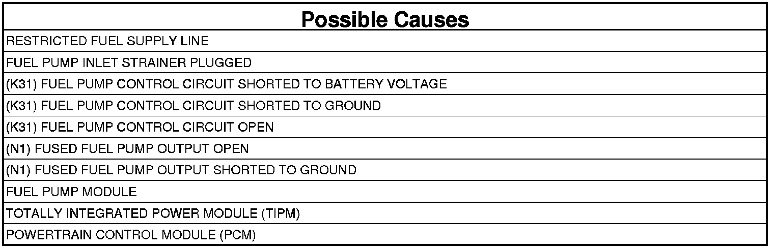- Repair the short to ground in the (N1) Fused Fuel Pump Output circuit.