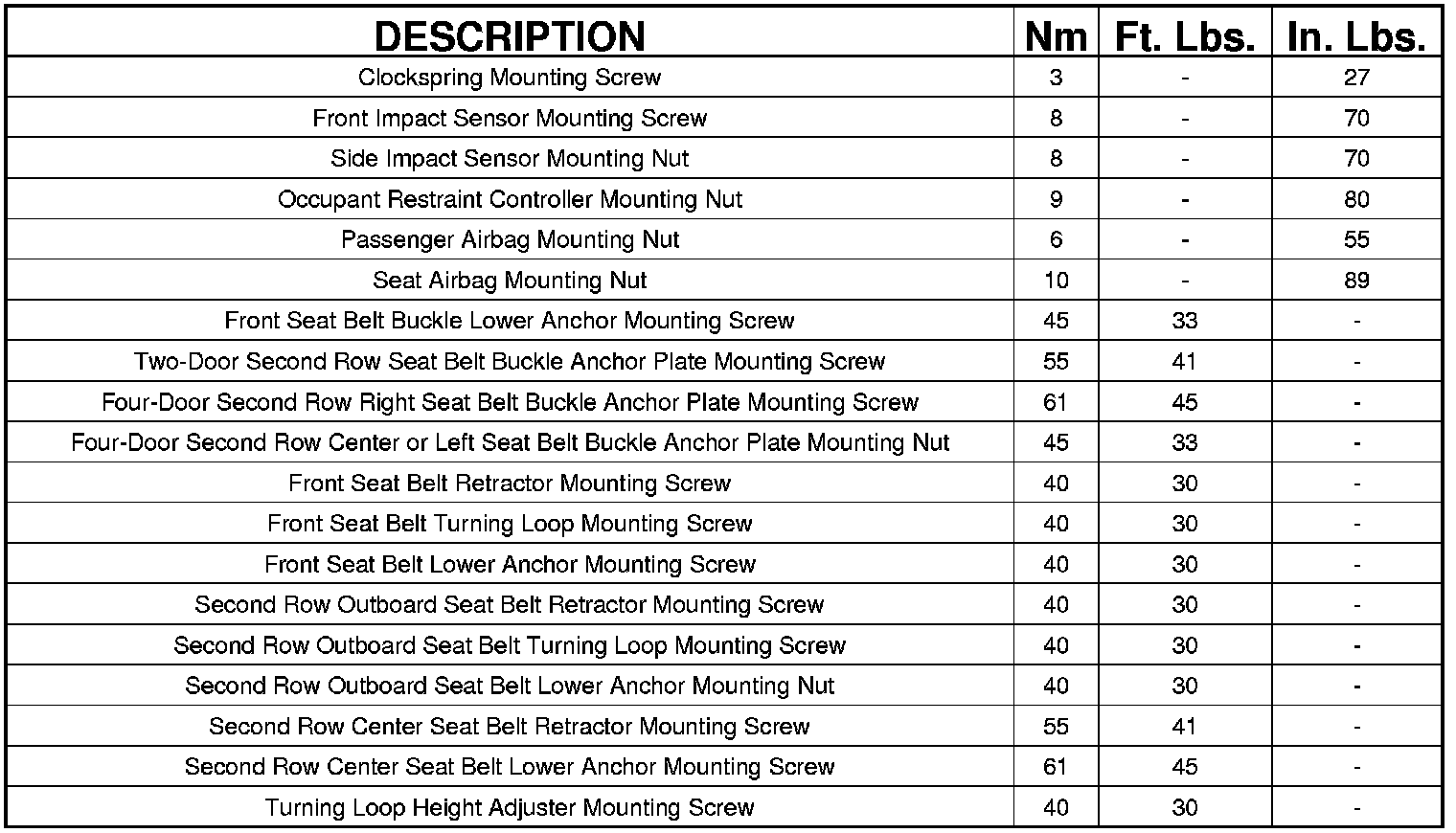 TORQUE SPECIFICATIONS