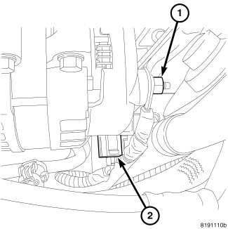 7. Install the nut (3) securing the negative cable (2) to the body ground stud. Tighten the cable nut to 12 Nm (9 ft. lbs.)