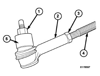 2. Loosen the tie rod jam nuts (3).