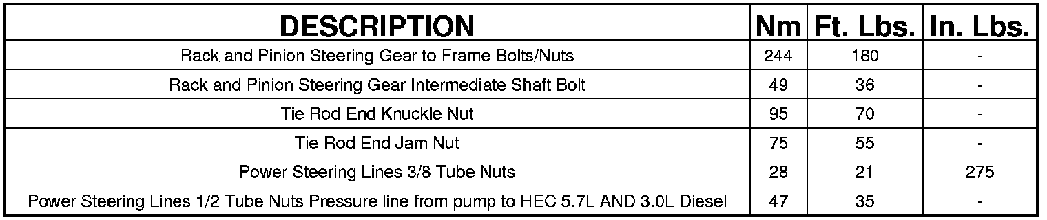 Steering Gear: Specifications