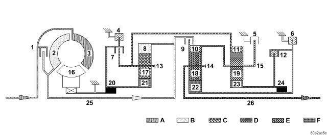 The pressure on the opposing face of the piston B2 (6) ensures a soft activation of the multiple-disc holding clutch B2.