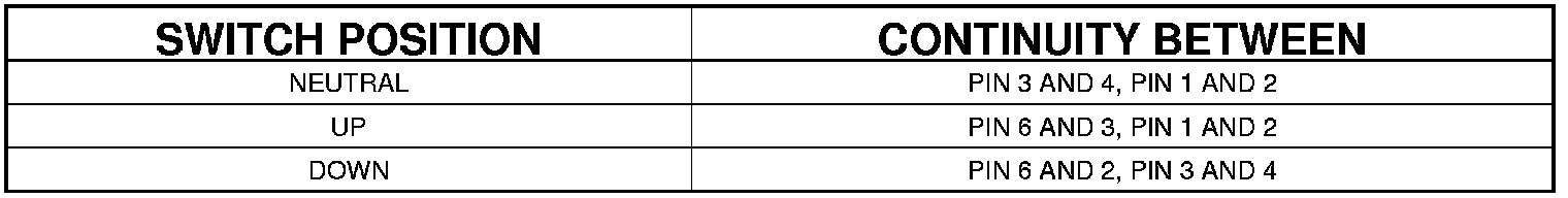 REAR POWER WINDOW SWITCH CONTINUITY CHART