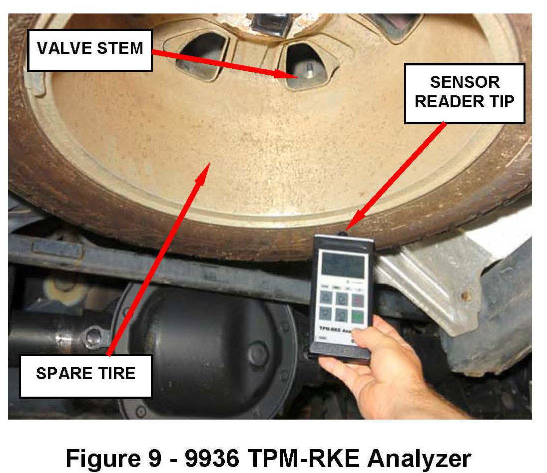1. Determine the spare tire TPS pressure sensor ID number using the following procedure: