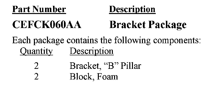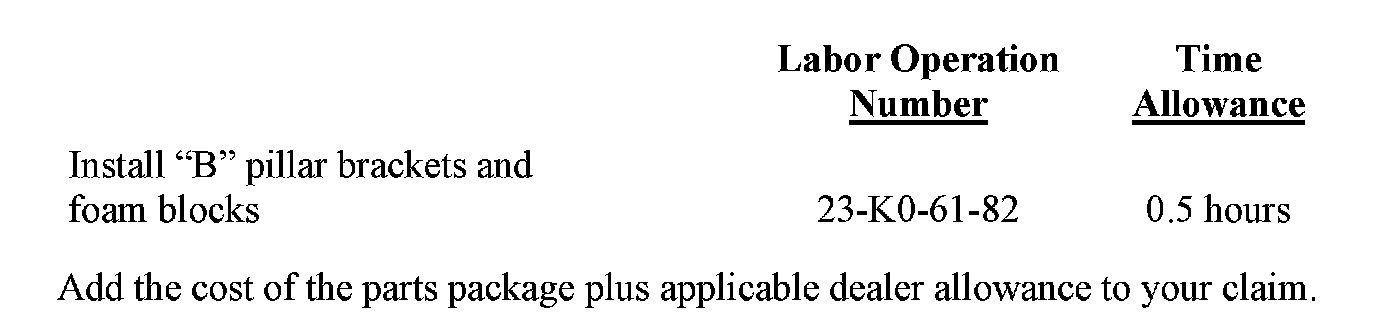 All involved vehicles must have a "B" pillar trim bracket and foam block installed behind the "B" pillar trim panel on both sides of the vehicle.