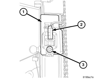 1. Position the full open switch (2) onto the power liftgate drive unit assembly (1) and install the retaining screw (3).