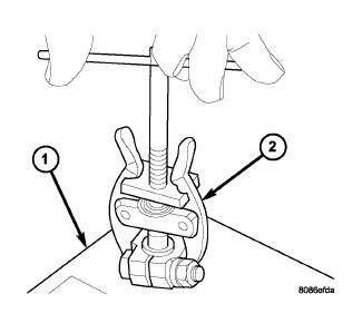 NOTE: It may be necessary to use a battery terminal puller (2) if the battery cable terminal clamps are seized on to the battery posts.