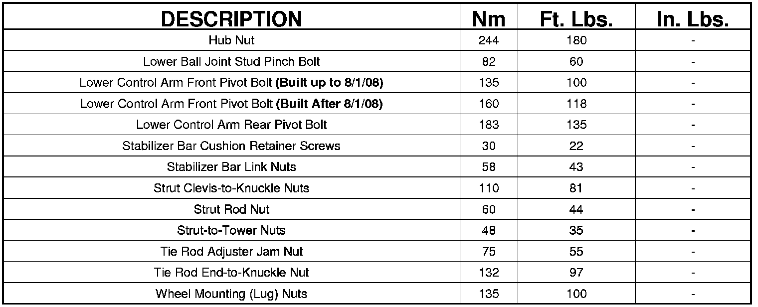 Front Suspension Specifications