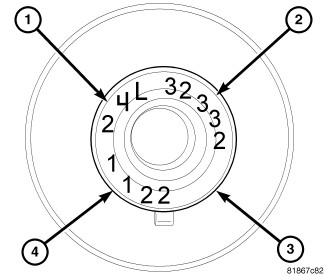 The lower main bearing identification (2) is stamped in the nose of the crankshaft (3). There are 5 different bearing sizes available 0 through 4.