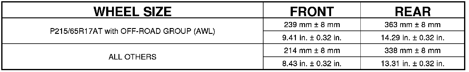 CURB HEIGHT SPECIFICATIONS
