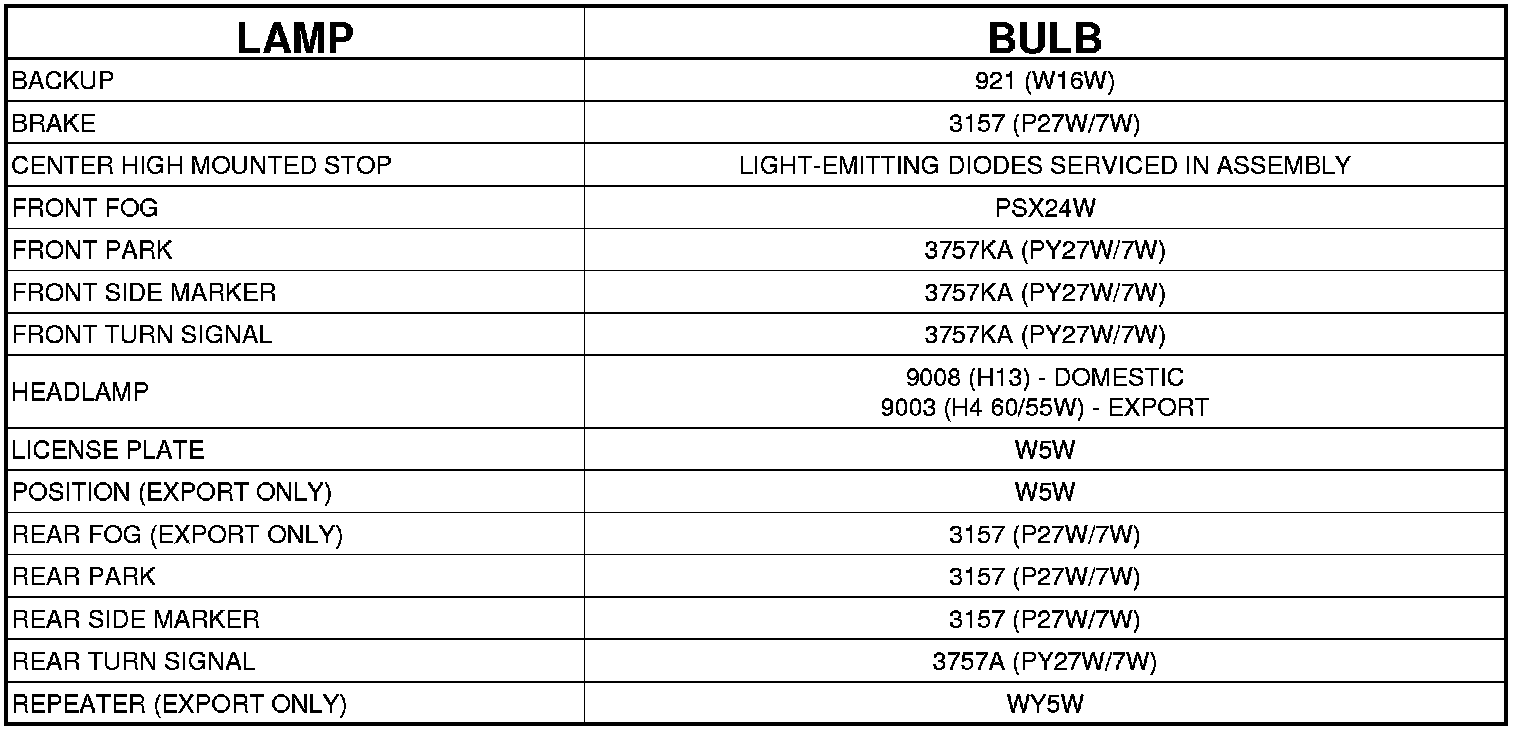 BULB APPLICATION TABLE