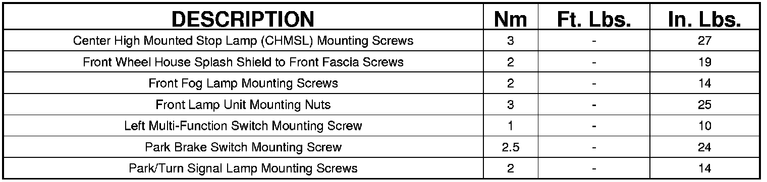 TORQUE SPECIFICATIONS