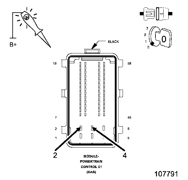 3. Using a 12-volt test light connected to ground, probe the (A931) Fused B+ circuit in the PCM harness connector.