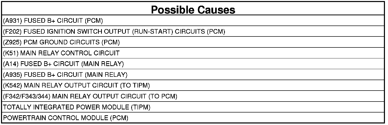 - Repair the (K542) Main Relay Output circuit between the TIPM and the Main Relay. Inspect the related fuses.