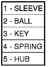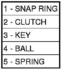 6. Line up stop ring tang over the keys in the hub, install stop rings, center the keys (3) and balls (4) by pushing on both stop rings.