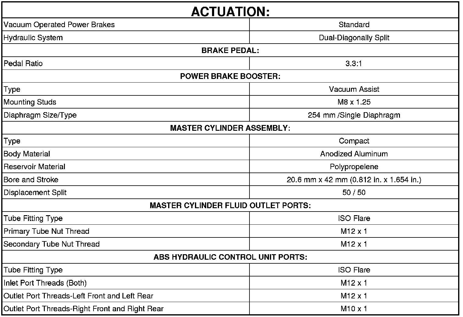 Brake Specifications