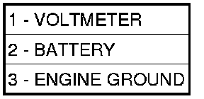 4. Connect voltmeter (1) to measure between negative terminal post on battery (2) and a good clean ground on engine block (3). Rotate and hold ignition switch in Start position. Observe voltmeter. If reading is above 0.2 volt, clean and tighten negative battery cable attachment on engine block and repeat test. If reading is still above 0.2 volt, replace the negative battery cable.