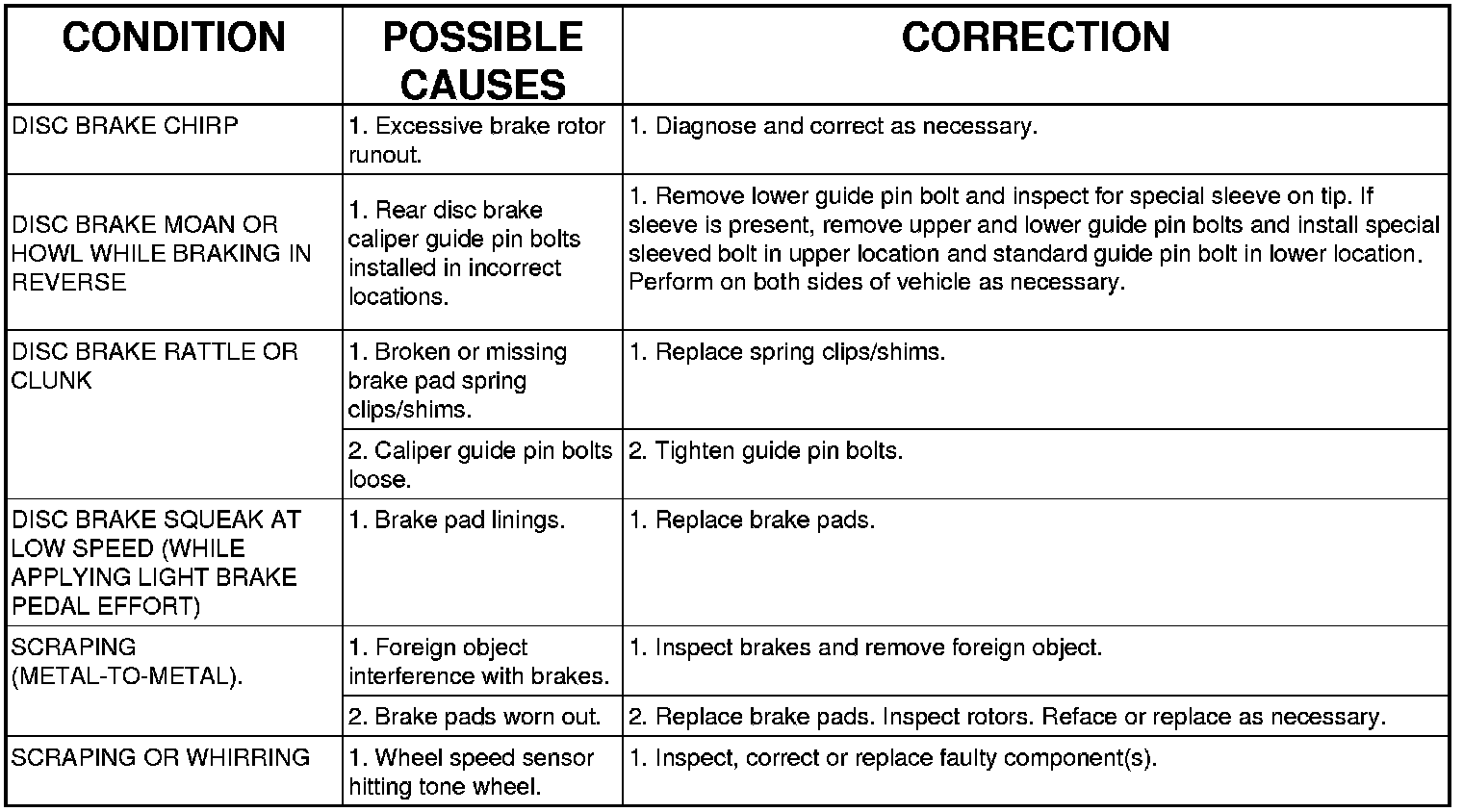 BASE BRAKE SYSTEM DIAGNOSIS CHARTS