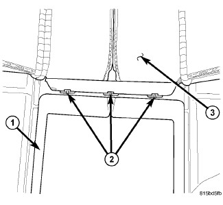 9. Using a small flat bladed tool (4) or equivalent, release the headrest sleeve retaining tabs through the openings (2) in the sleeve support piece.