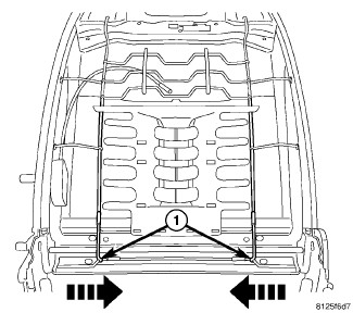 14. Release the lumbar mat side wires (1) by pulling out on the wire supports and then pulling them in.