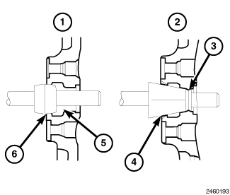 NOTE: Balance equipment could read an incorrect balance result when measuring Chrome Clad wheels. This is caused by the equipments mounting cone/collet contacting the cladding or the cone/collet is not balanced. A dual-taper collet (1) type wheel centering tool is recommended as opposed to a high-taper cone (2) type wheel centering tool. Always use the manufacturer's recommended balance equipment.