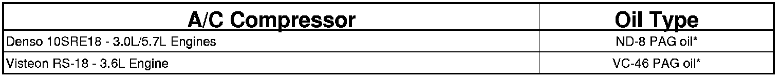 *Always use the type of PAG oil listed for the model being serviced. See A/C Underhood Specification Label located in the engine compartment. Do not mix different types of PAG oils.