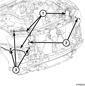 3. Install and tighten the three screws (3) that secure the two lower and the one upper mounting brackets integral to the lamp housing to the FEM. Tighten the screws to 7 Nm (62 in. lbs.).