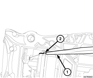 5. Using a cold chisel (1) or equivalent knock the access door (2) off of the steering column lock module.
