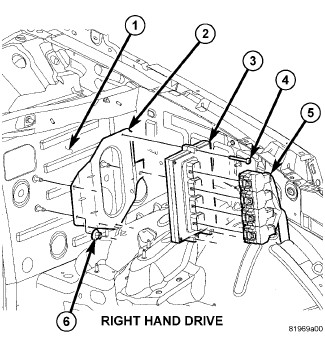 1. The PCM (Powertrain Control Module) (3-Left Hand Drive), or (3-Right Hand Drive) is located in the engine compartment.