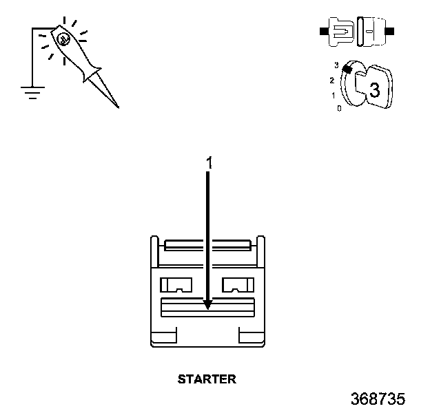4. Using a 12-volt test light connected ground, probe the (T750) Stater Relay Output circuit in the Starter Solenoid harness connector while the ignition key is in the CRANK position.