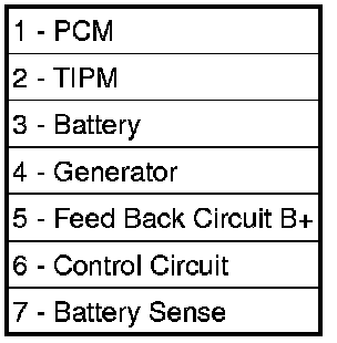 On gasoline powered engines, the charging system is turned on and off with the PCM (Powertrain Control Module) and ignition switch with engine running. On diesel powered engines, the charging system is turned on and off with the ECM (Engine Control Module) and ignition switch with engine running. The field circuit will not be energized until engine is running and ignition switch on. This voltage is connected through the PCM and supplied to one of the generator field terminals (Gen. Source B+) at the back of the generator. The generator is internally grounded. The generator regulates the field using pin-1 of the field connector (high side driver).