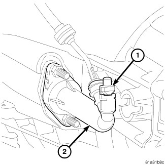 3. Push and hold clutch pedal down, open bleeder (1) on slave cylinder (2), allow fluid to bleed out, then close bleeder. Repeat this step several times until no air is observed coming out of the bleeder.