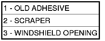 2. Level old bead of liftgate glass adhesive (3) to a thickness of approximately 1 mm (0.04 in.) and remove loose adhesive.