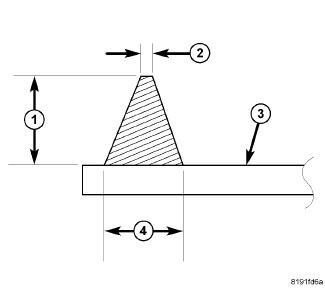 1. Bead dimensions should be approximately 9.5 mm (0.375 in) wide (4) by 12.7 mm (0.50 in) in height (1).