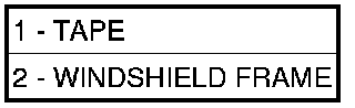 5. Lift windshield (2) into place in the center of the windshield opening and use the tape as a guide to aid installation of the windshield into the center of the cutout.