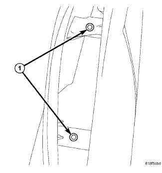 6. Remove the two lower bolts (1) next to the door sill.