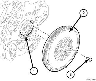 3. Remove the six flywheel-to-crankshaft bolts (3) and remove flywheel assembly (2).