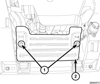 1. Install the power inverter module, install the lower power inverter retainers (1) and connect the wiring connector (2).