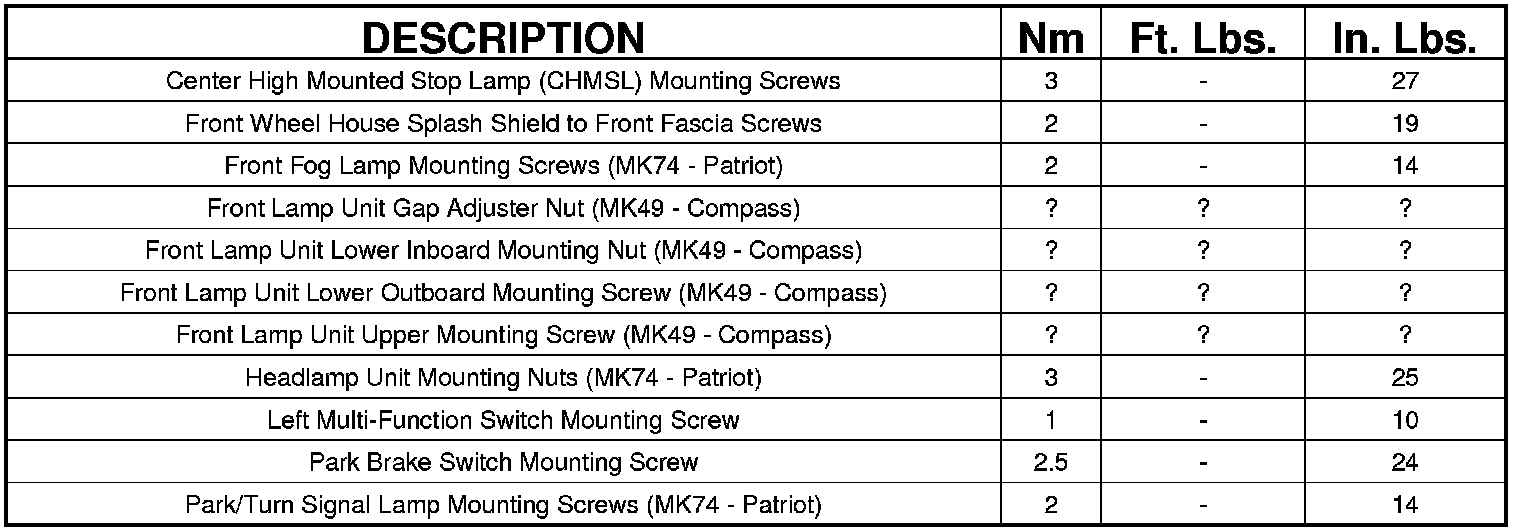 TORQUE SPECIFICATIONS