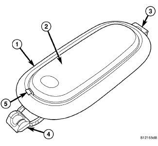 4. Slide the notched end of the housing into the mounting hole far enough to engage the lens hinge/retainer (3) into the opposite side of the hole in the headliner.