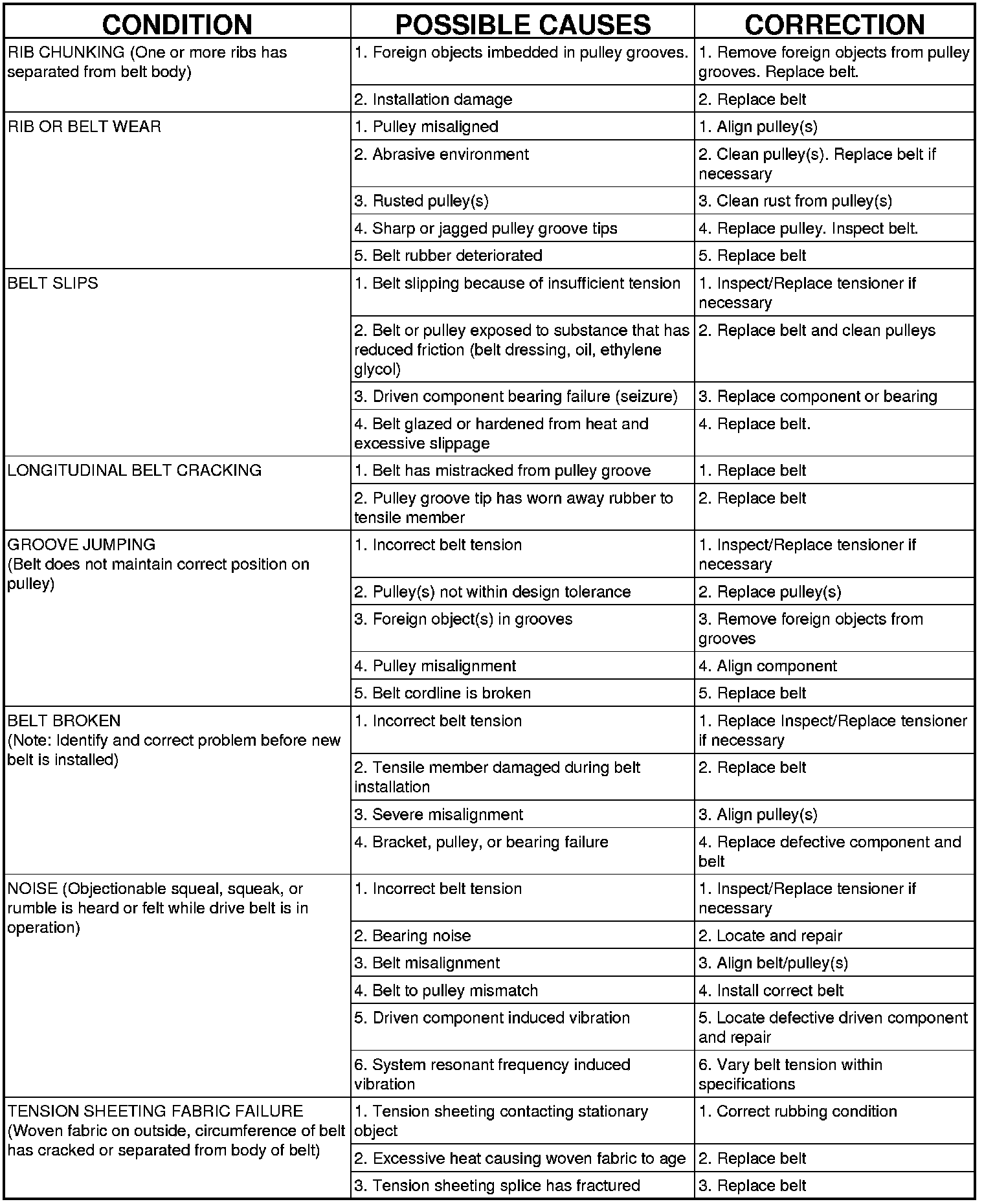 ACCESSORY DRIVE BELT DIAGNOSIS CHART