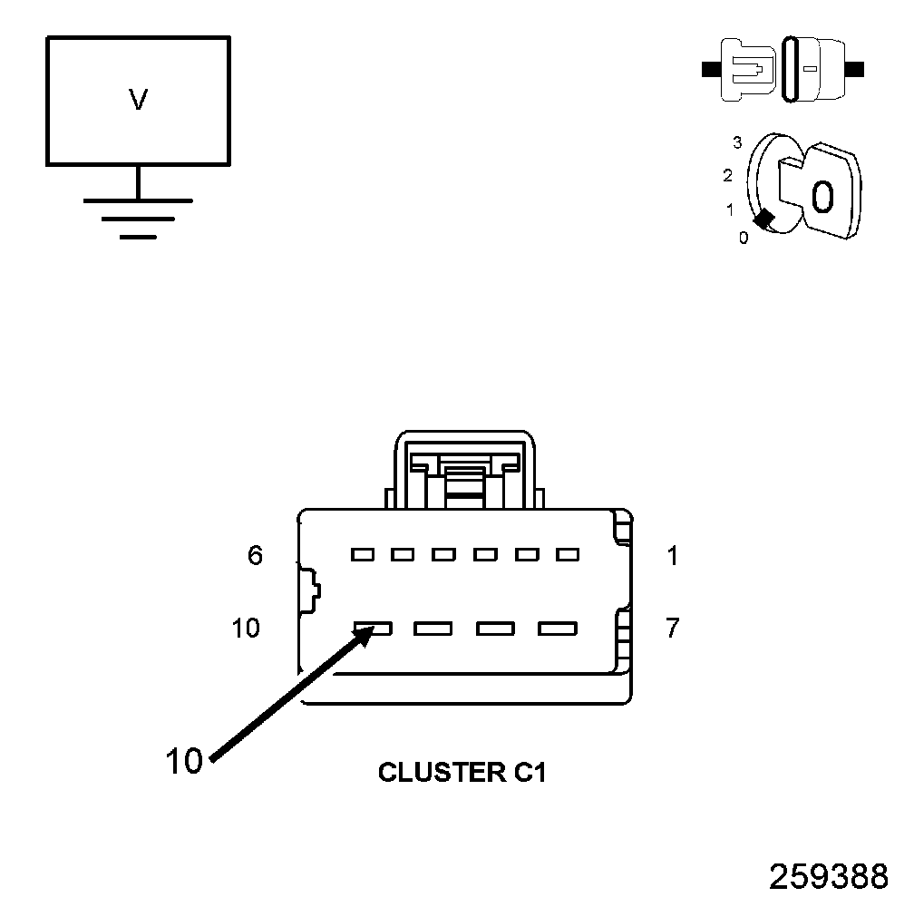 2. Measure the voltage of the (A932) Fused B+ circuit in the Cluster C1 connector.