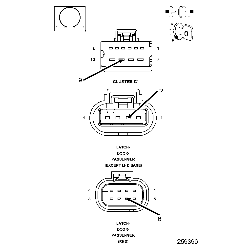 2. Measure the resistance of the (P33) Door Lock Driver wire between the Cluster C1 connector and the door latch connector.